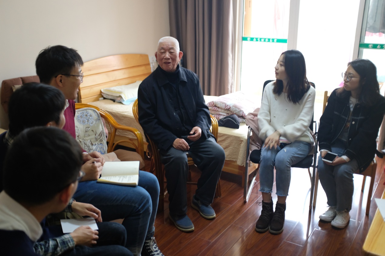 为庆祝新中国成立70周年,响应党中央开展第二批"不忘初心,牢记使命"主题教育活动号召,深入学习贯彻胡金波书记在南京大学"不忘初心、牢记使命"主题教育动员大会上的重要讲话精神,11月17日,3044永利集团官网2018级中国史硕士生党支部前往养老院,拜访了荣获中共中央国务院、中央军委颁发的"庆祝中华人民共和国成立七十周年纪念章"的姜平教授。