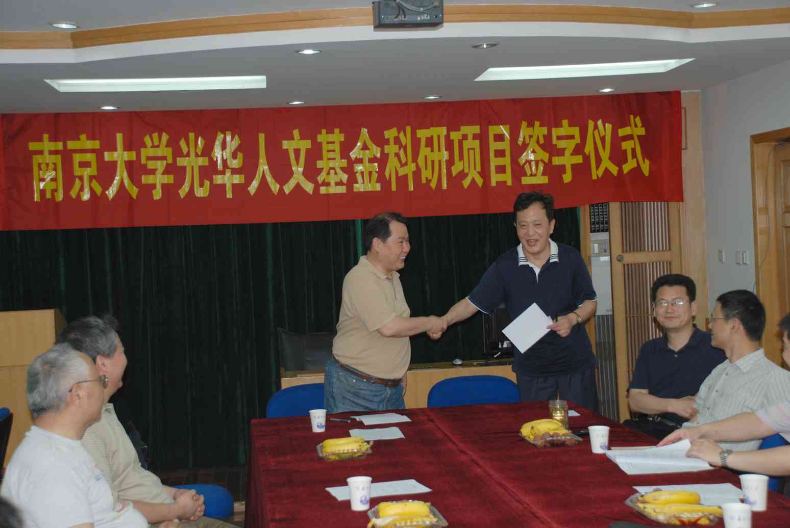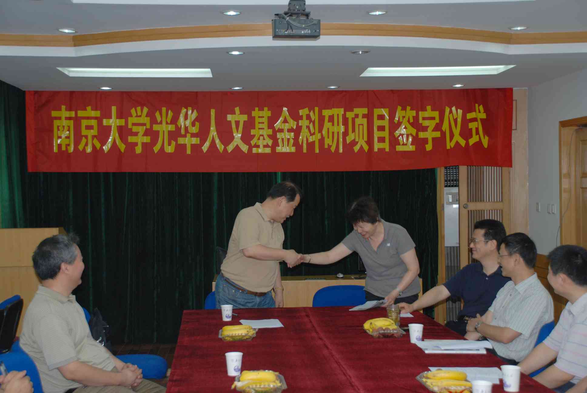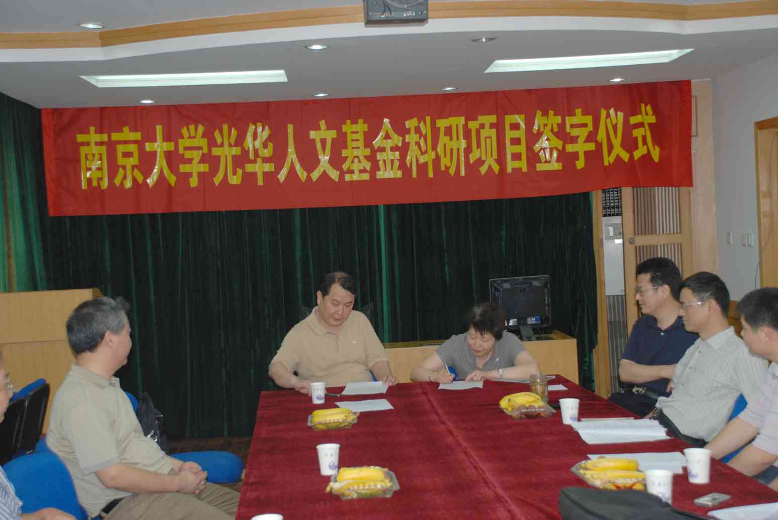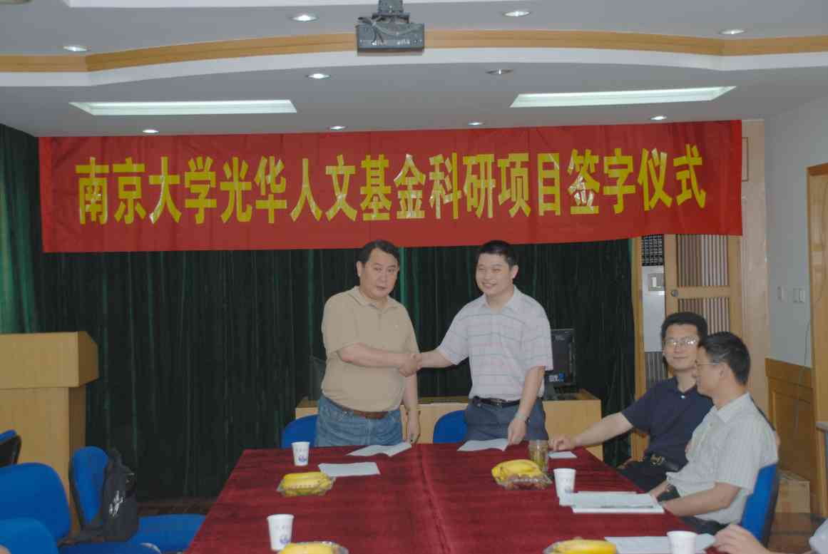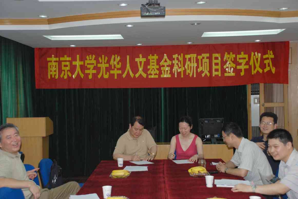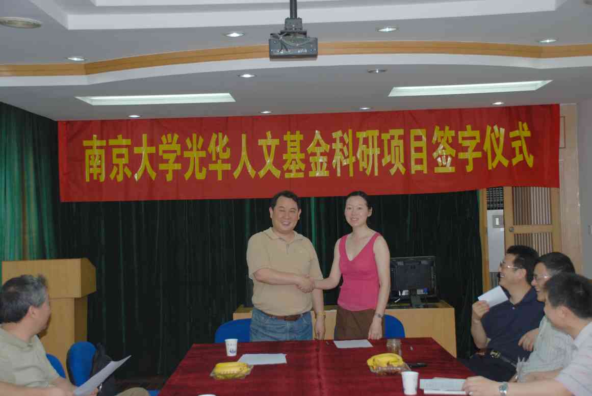 7月17日南京大学光华基金项目签约仪式在我系举行,系主任陈谦平教授和项目获得者一一签署合作协议。根据协议,项目获得者在3年的时间里将获6万元人民币的研究经费资助,集体项目3年将获得30万资助。这一举措将极大的激发广大教师的科研热情,大家也纷纷表示将会不辜负系领导和台湾光华基金会的希望,努力作出优异的成绩。出席仪式的还有我系党委书记孙江林、副主任水涛、计秋枫等。