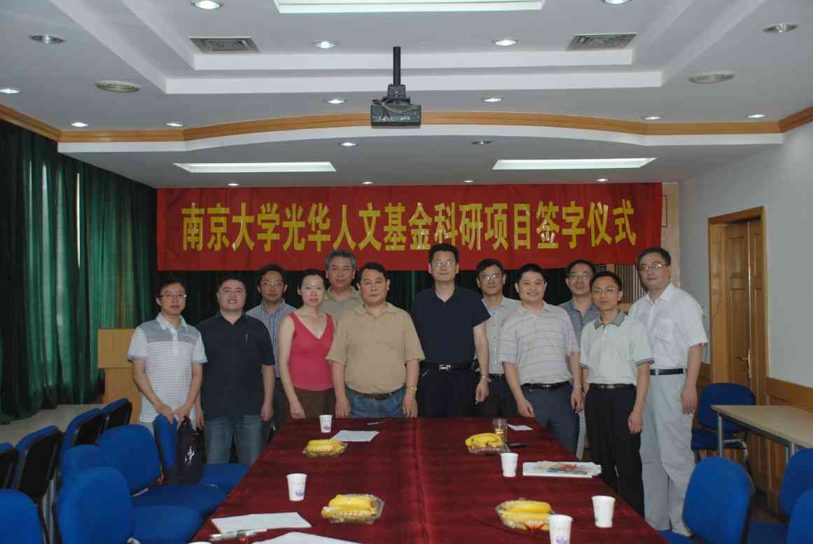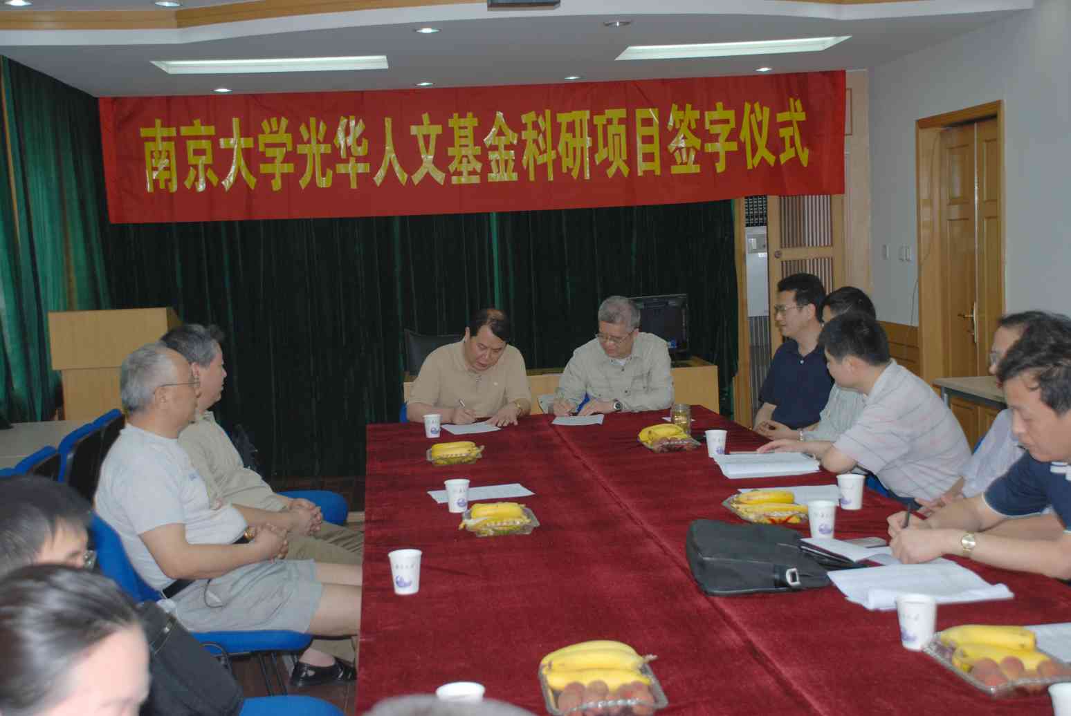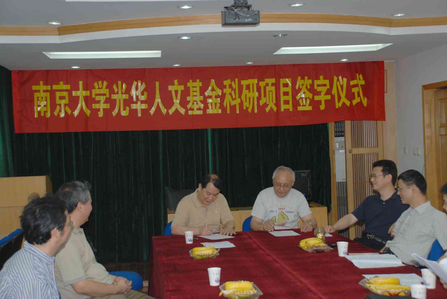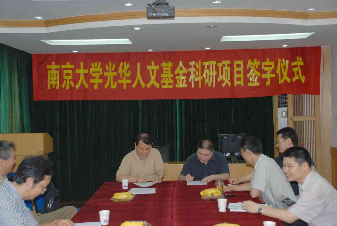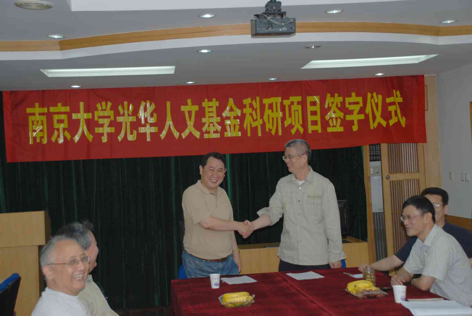 7月17日南京大学光华基金项目签约仪式在我系举行,系主任陈谦平教授和项目获得者一一签署合作协议。根据协议,项目获得者在3年的时间里将获6万元人民币的研究经费资助,集体项目3年将获得30万资助。这一举措将极大的激发广大教师的科研热情,大家也纷纷表示将会不辜负系领导和台湾光华基金会的希望,努力作出优异的成绩。出席仪式的还有我系党委书记孙江林、副主任水涛、计秋枫等。