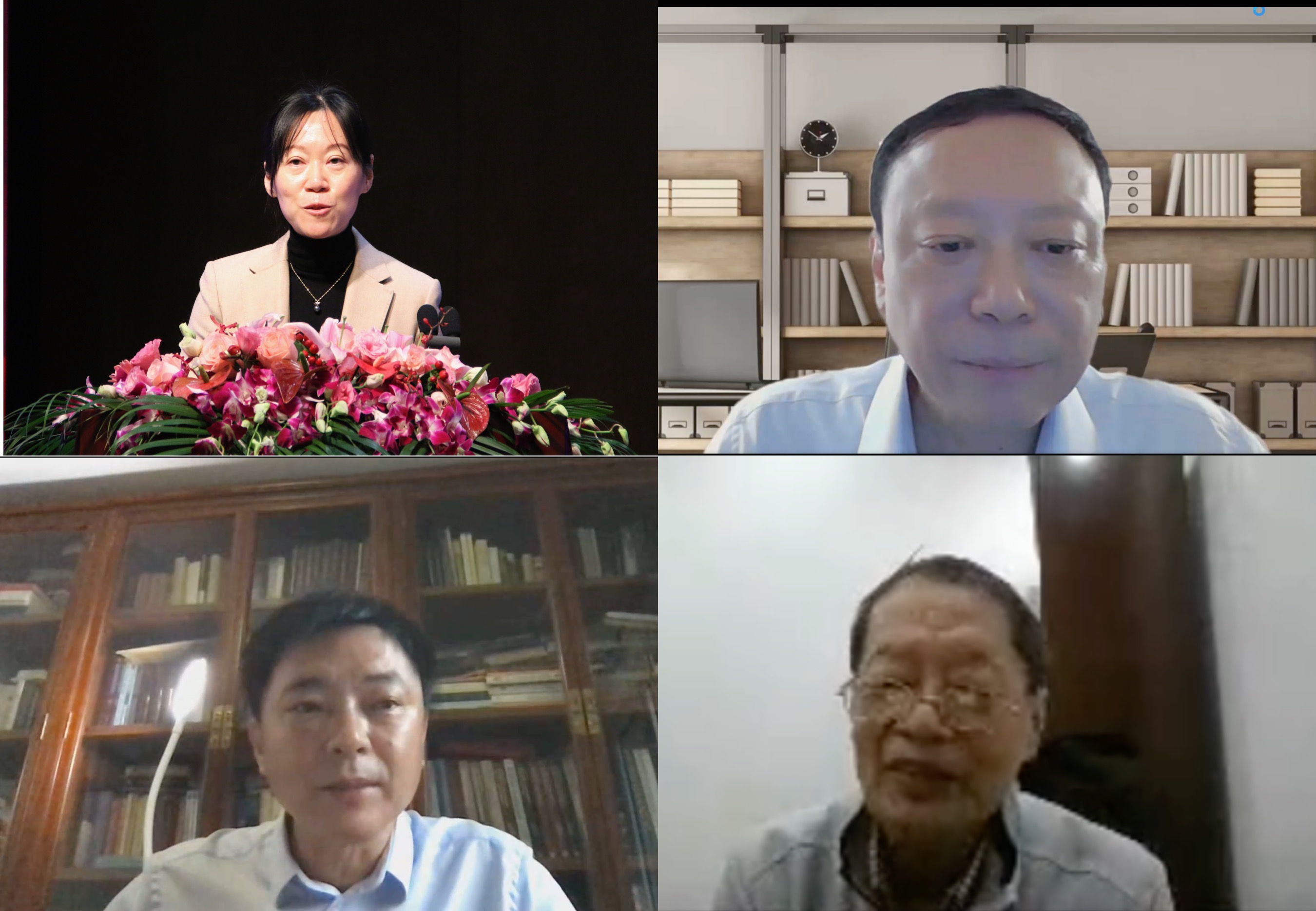 第一场主持人罗晓翔教授(左上),报告人卜宪群研究员(右上)、沈卫荣教授(左下)、陈支平教授(右下)