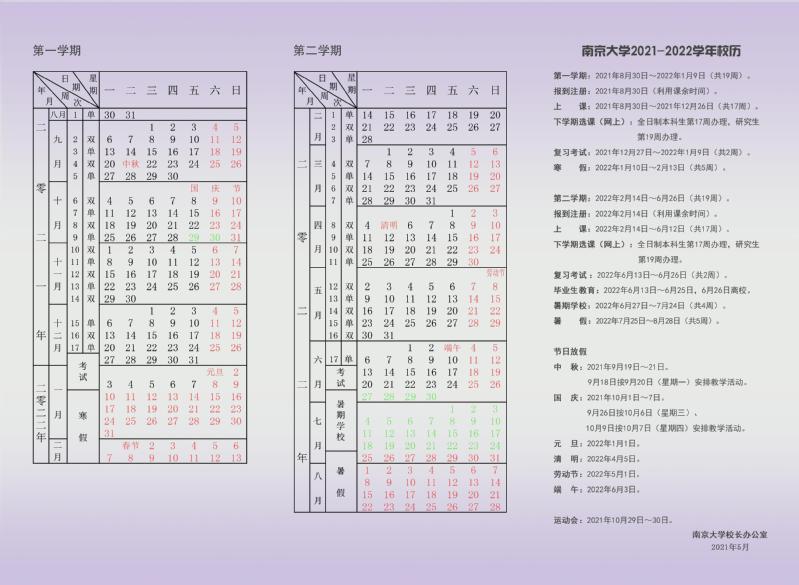 南京大学2021-2022学年校历