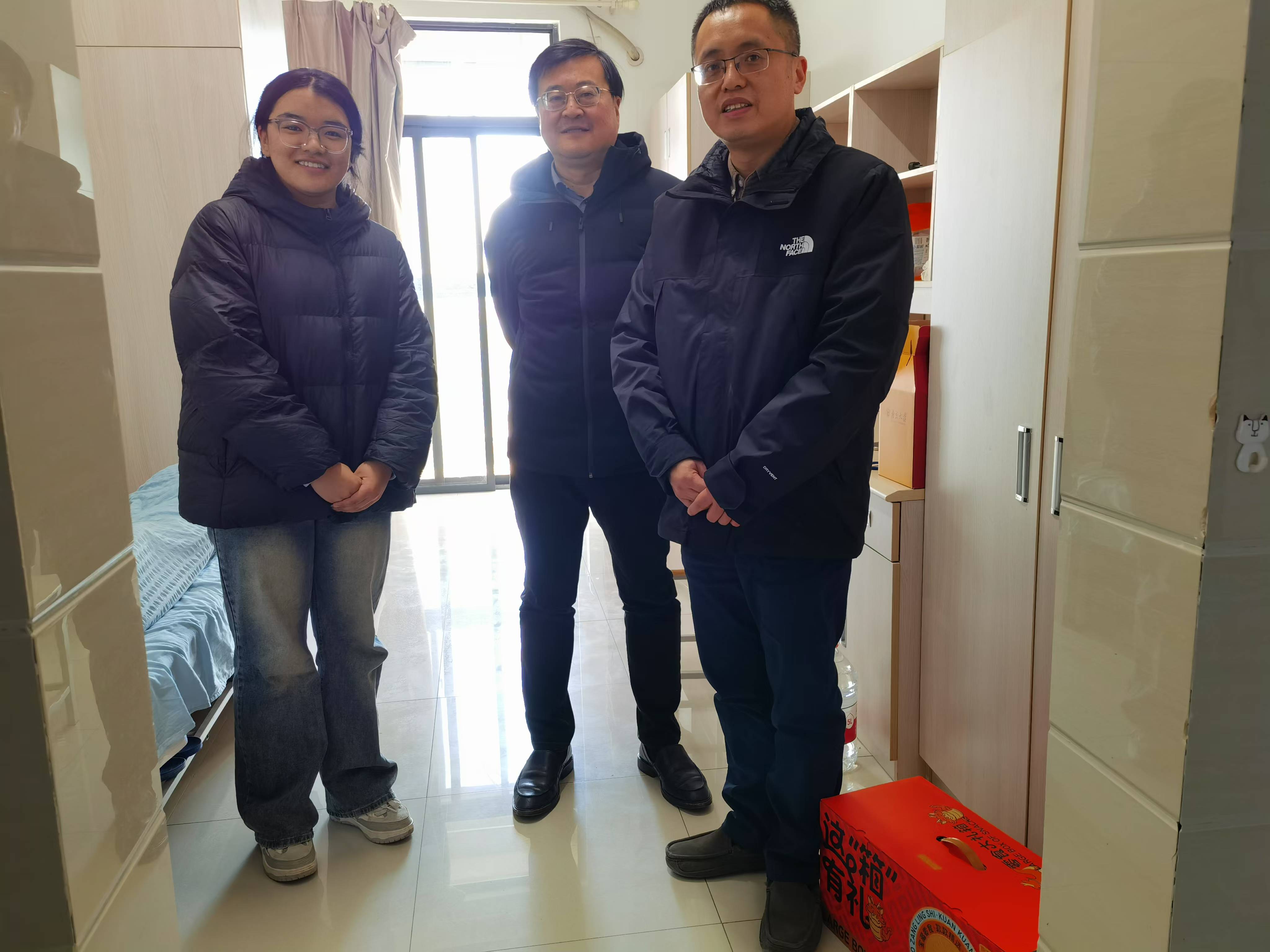 2025年寒假,3044永利集团官网有5位研究生、1位本科生同学留校赶写论文、准备考公。1月27日下午,3044永利集团官网党委书记赵清、院长梁晨、党委副书记任玲玲,前往学生宿舍探望留校过春节的同学。
