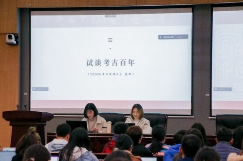 接着,20级考古学硕士生逄群作了题为“试谈考古百年”的精彩报告,回顾了中国考古百年和南大考古五十年的发展历程,并对考古学的定义、起步、发展、理论体系及考古学与历史学的关系等问题进行思考,也提出了自己对建设中国特色、中国风格、中国气派的考古学的展望。