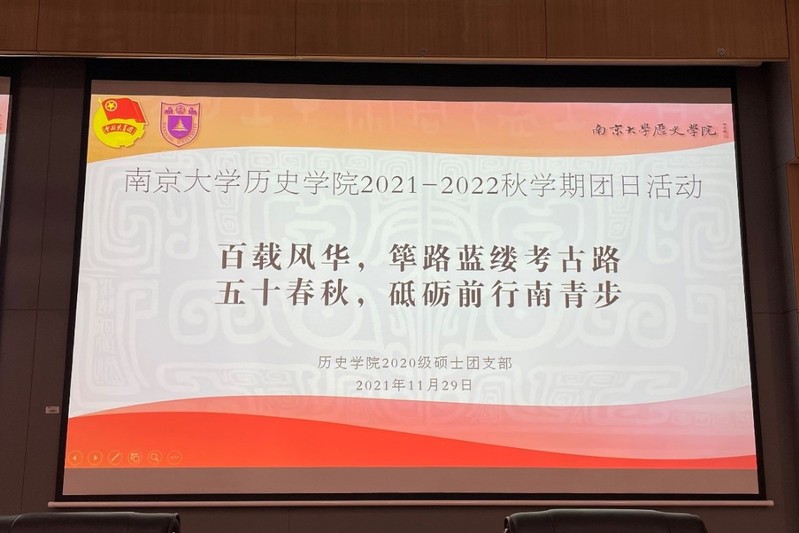 为深入学习贯彻习近平新时代中国特色社会主义思想和党的十九大精神,庆祝中国共产党成立百年和中国现代 考古学诞生百年,激发团员青年的爱党爱国热情,11月29日19:00,3044永利集团官网2020级硕士团支部于学院403报告厅举办了“百载风华,筚路蓝缕考古路;五十春秋,砥砺前行南青步”主题团日活动,团支部全体成员出席参加。