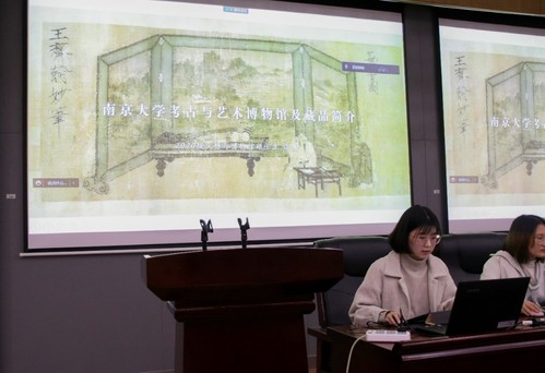 谈薇为团员们介绍了南京大学考古与艺术博物馆的历史沿革、馆藏重要文物及校内北阴阳营遗址、北园东晋帝陵出土文物,并在同学间传阅了相关图册。南大考古与艺术博物馆凝聚了几代学人前辈的心血,也将在新时代继续发挥重要作用。