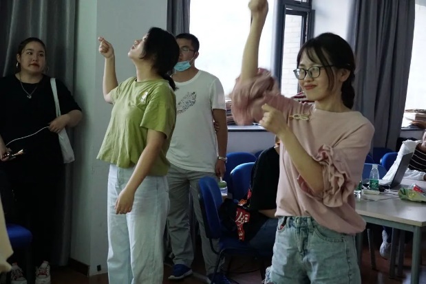 每组同伴分成两队,一队的人比划,一队的人猜,考验组员默契的时候到了!
