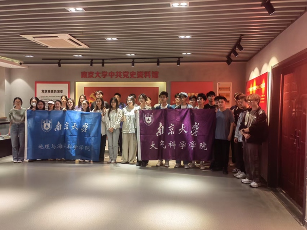 2025年5月26日下午4时,地理与海洋科学学院自然地理学硕士生第一党支部、大气科学学院硕士生第一党支部共同开展“立根铸魂强作风 攻坚克难建新功”联合主题党日活动。一行共30余人参观学习南京大学中共党史资料馆、中国共产党作风建设专题展览。