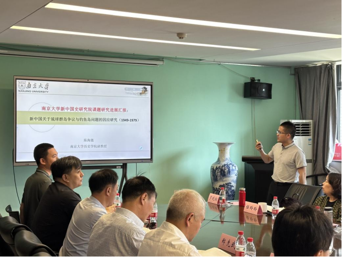 陈海懿副教授汇报了课题《新中国关于琉球群岛争议与钓鱼岛问题的因应研究(1949-1979)》的阶段性成果,介绍了研究中大量史料的搜集与整理情况,展示了目前已发表的相关论文与书稿成果,并对后续研究进行了展望。