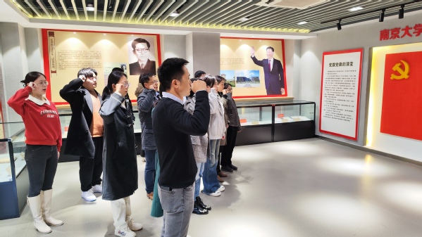 2023年11月21日,南京大学法学院本科生党支部和行政教师党支部共55名党员参观了党史馆,并在党史馆重温了党员宣誓仪式。
