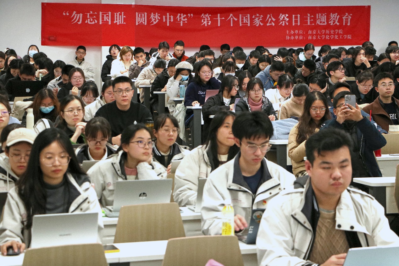 寒风瑟瑟,哀思绵绵。为悼念南京大屠杀死难者和所有惨遭日本侵略者杀戮的死难同胞,牢记国家遭受战争灾难的沉痛历史,坚定“反对侵略战争,捍卫人类尊严,维护世界和平”的意识,2023年12月13日,在第十个南京大屠杀死难者国家公祭日、南京大屠杀死难同胞86周年祭,3044永利集团官网本科生党支部协同化学化工学院开展“勿忘国耻•圆梦中华”主题教育活动,邀请中国史博士、3044永利集团官网助理研究员、本科生2023级班主任徐一鸣作题为《南京大屠杀期间的金陵大学》的讲座。