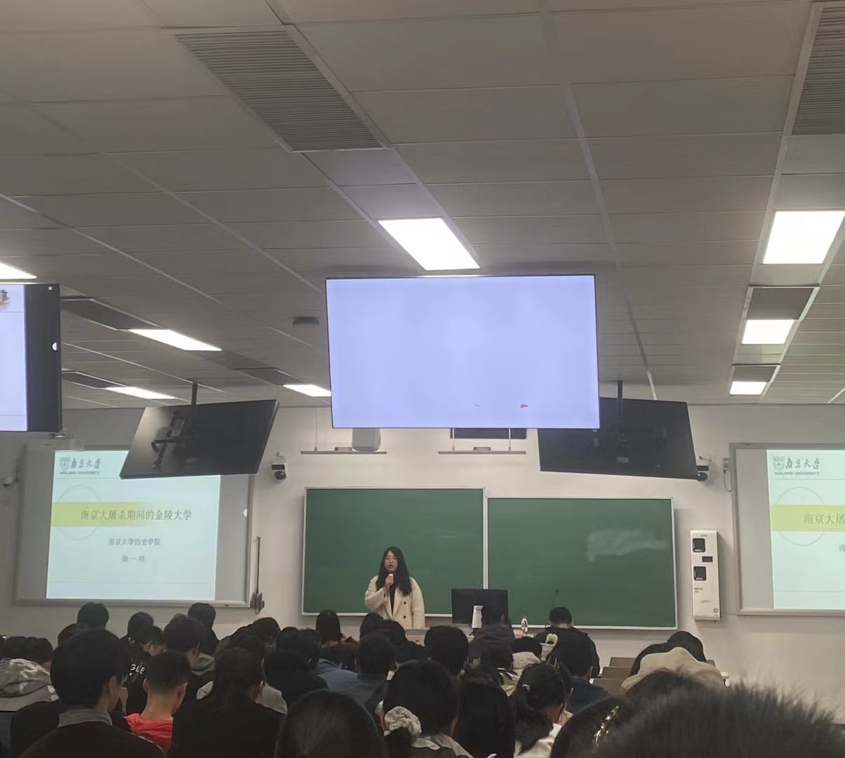 讲座中,徐一鸣以详细丰富的史实资料为基础,讲述了在南京大屠杀期间,南京大学前身之一的金陵大学救助难民的历史,带领师生走入那段发生在我们现在生活的土地上的惨痛历史,站在和平时代与身处战争的同胞同声相应。