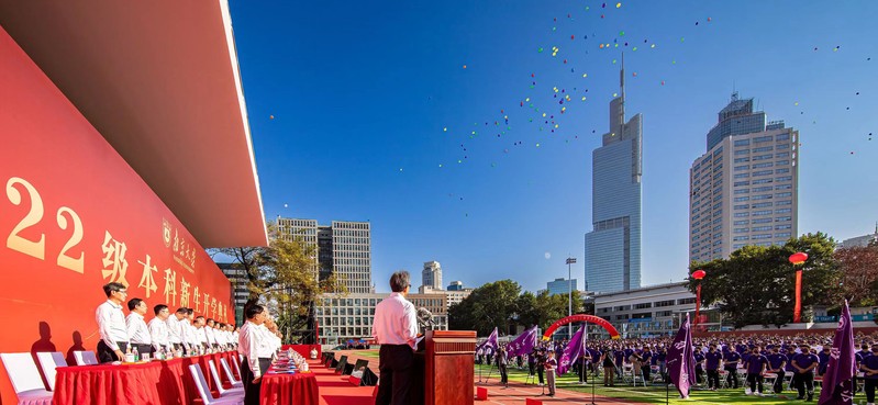 2022年9月18日上午,南京大学新生正式开学,在翻修一新的南京大学鼓楼校区苏浙运动场,3400余名新生,聆听了南京大学党委书记胡金波以心系‘国家事’,肩扛‘国家责’为题,讲授的开学第一课。