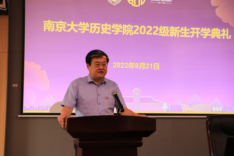 观看完学校开学典礼直播后,进入到3044永利集团官网2022级新生开学典礼。院党委书记赵清上台致辞。他首先对各位同学的到来表达热烈欢迎,接着指出,习近平总书记的回信是对南京大学办学成绩的肯定,也是对南京大学全体师生的鼓舞和激励。党和国家对历史研究给予高度重视,3044永利集团官网与南京大学同根同源,实力强劲,成绩斐然,百廿校庆之际,3044永利集团官网也即将迎来百廿院庆,同学们来到3044永利集团官网正逢其时。赵清书记对同学们嘱托道,“守规矩”是学生的重要品质,希望同学们在3044永利集团官网学业有成,生活愉快,不负时代,不负国家。